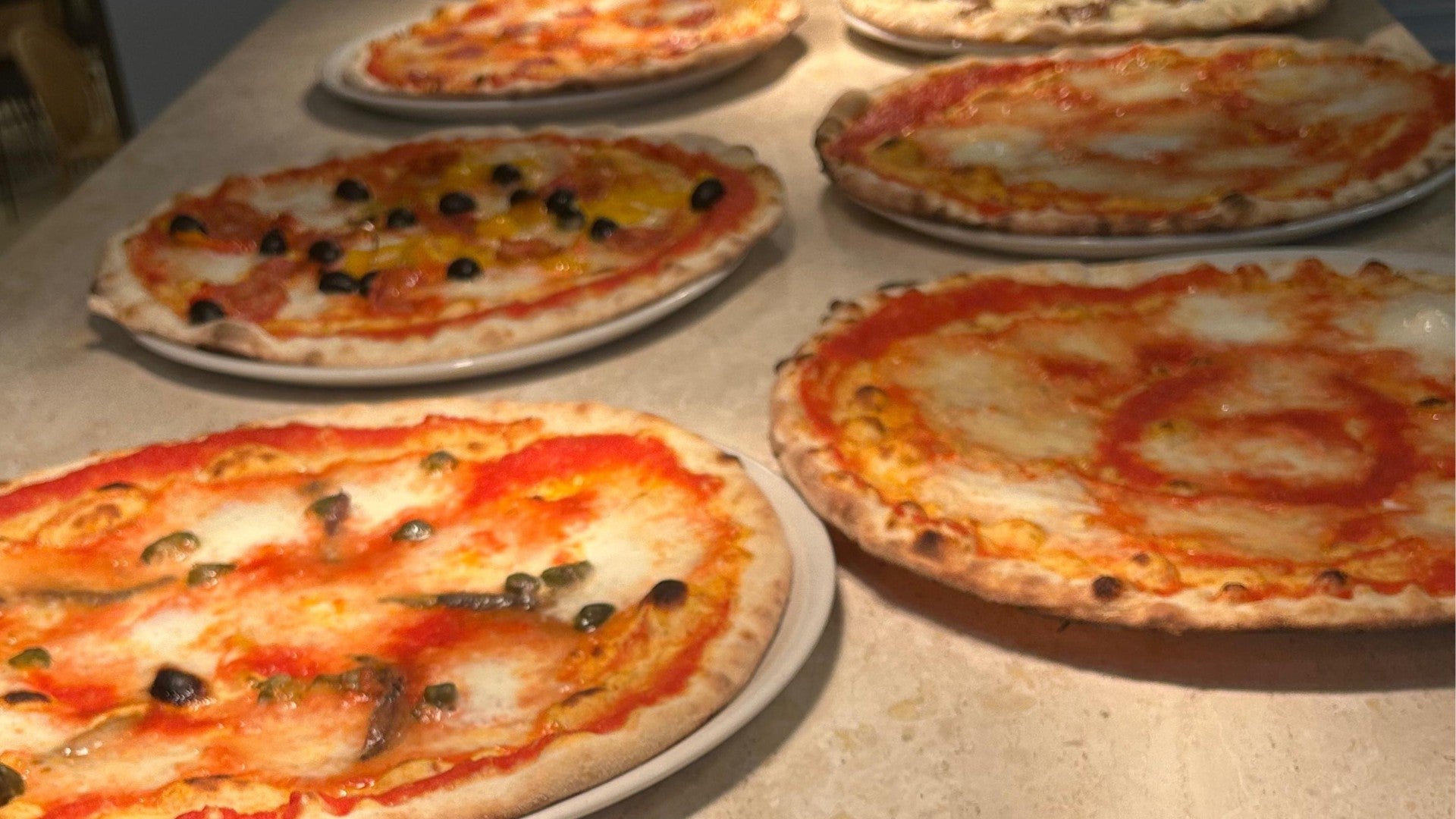 Sugo di pomodoro, fiordilatte, parmigiano, bocconcini di bufala, prosciutto crudo€14.00