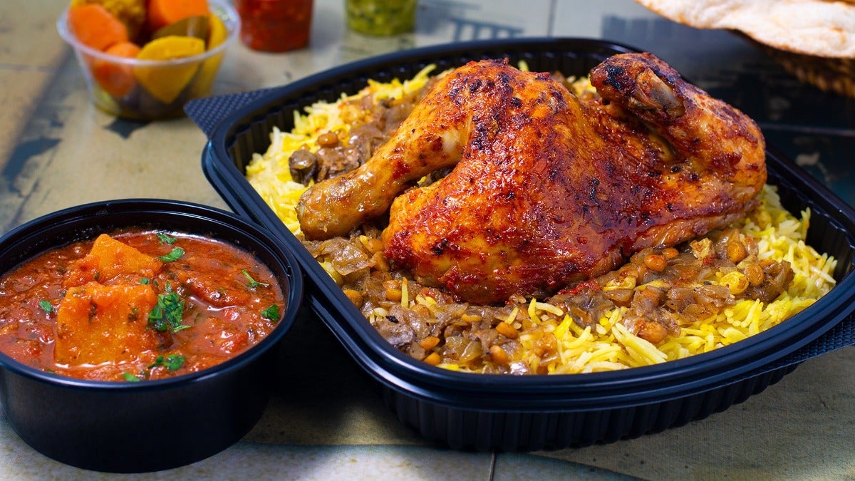 Crushed wheat cooked with shredded chicken, tomato and lumy (dry lime), topped with onion and lumy sautéed with butter.KD 2.950