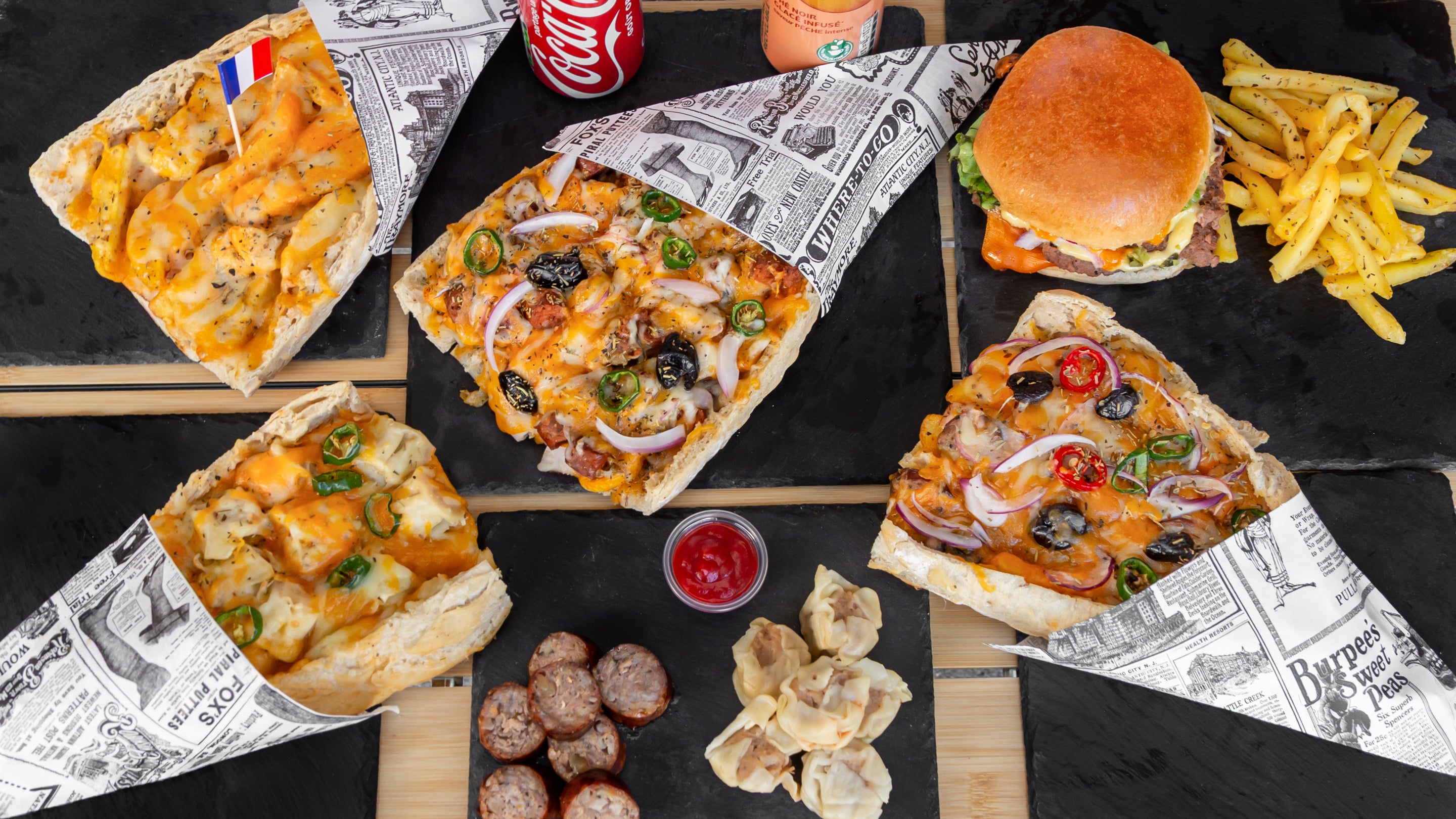 Recette préparé avec du pain moelleux , jambon poulet ou porc avec des frites croustillantes , garnie de fromage râpé fondu , sauce persillade , herbe de province le tout gratiné à la perfection et accompagné de vos sauces au choix .€14.30